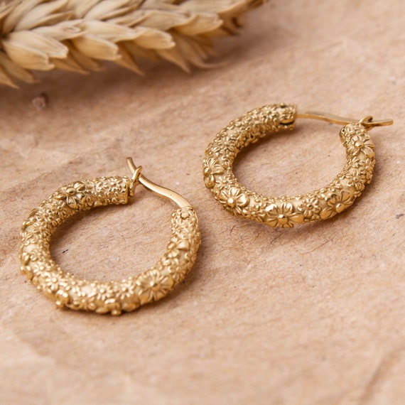Flower Hoop Earrings Gold Daisy Hoops Floral Hoop Earrings Etsy