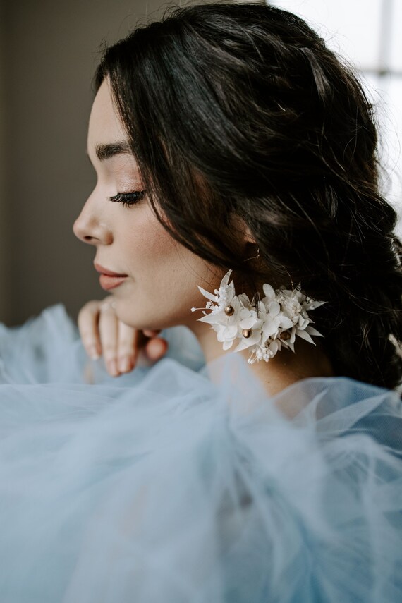 Persephone Preserved Flower Hydrangea Bridal Hoop Earrings Etsy Uk